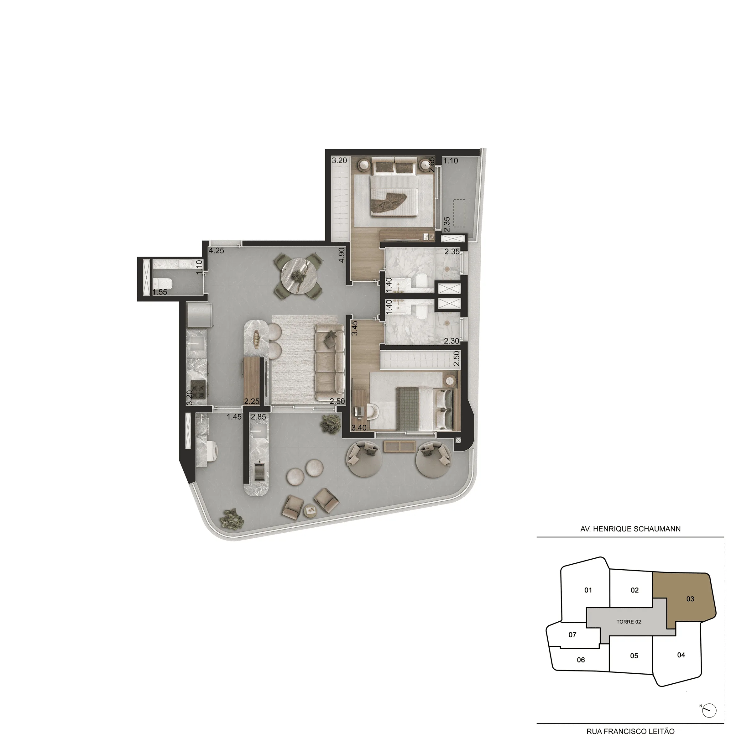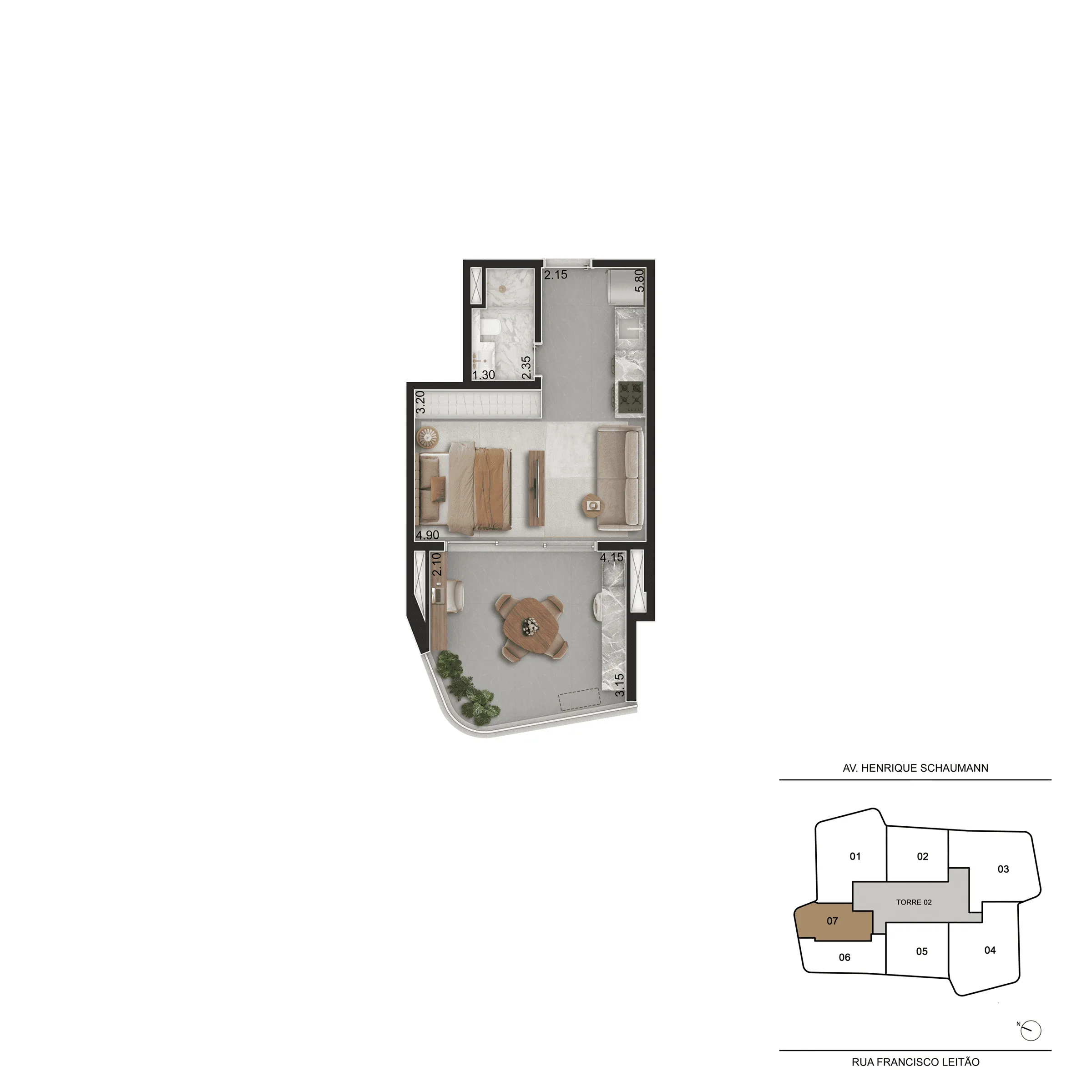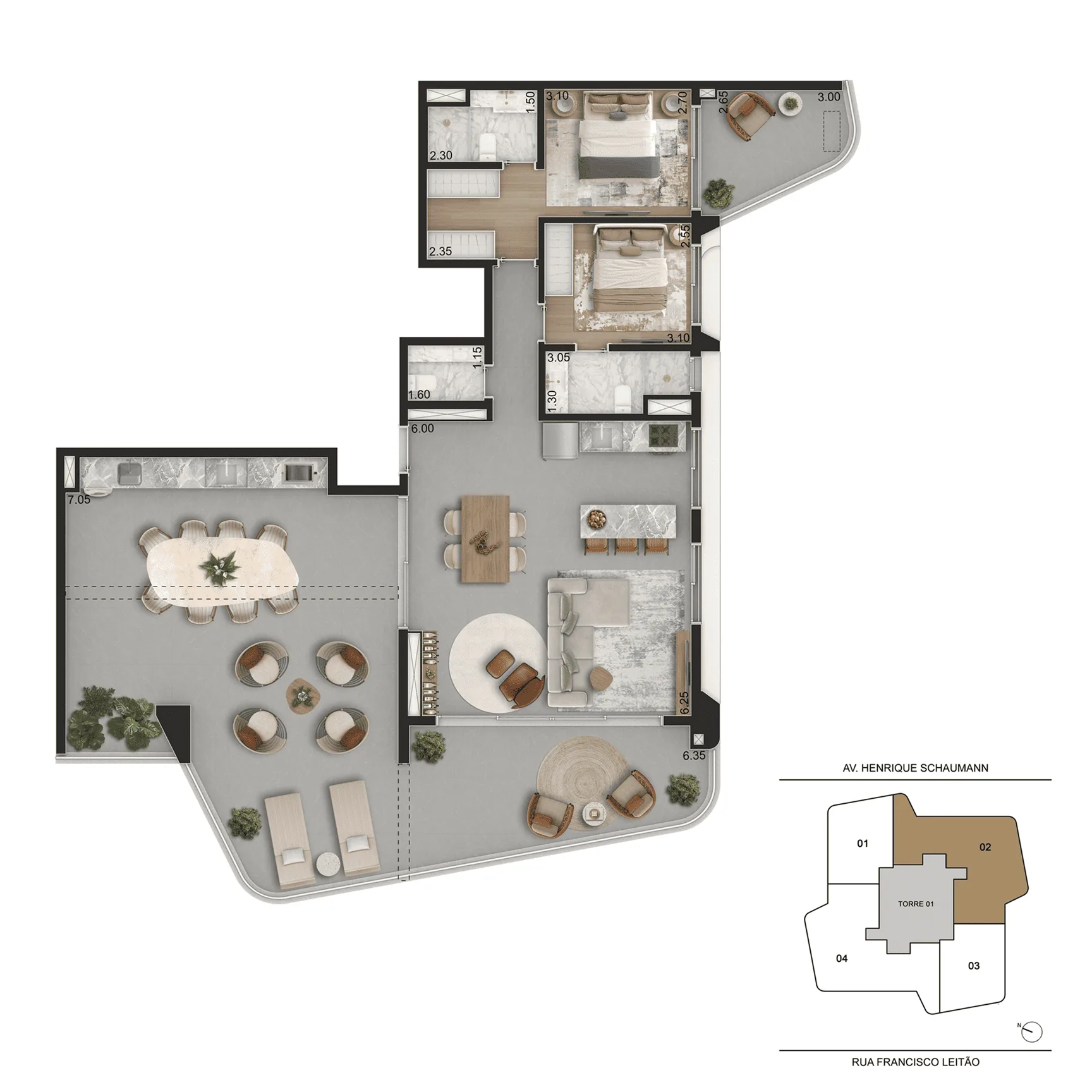 Localizado em Pinheiros, o empreendimento ocupa um terreno amplo e conta com duas torres e acessos independentes, oferecendo diversidade de plantas que vão de 44 m² a 166 m², entre studios, apartamentos, gardens e coberturas. As unidades foram pensadas para máxima eficiência, com boa iluminação, ventilação natural, terraços generosos e acabamentos de alto padrão.