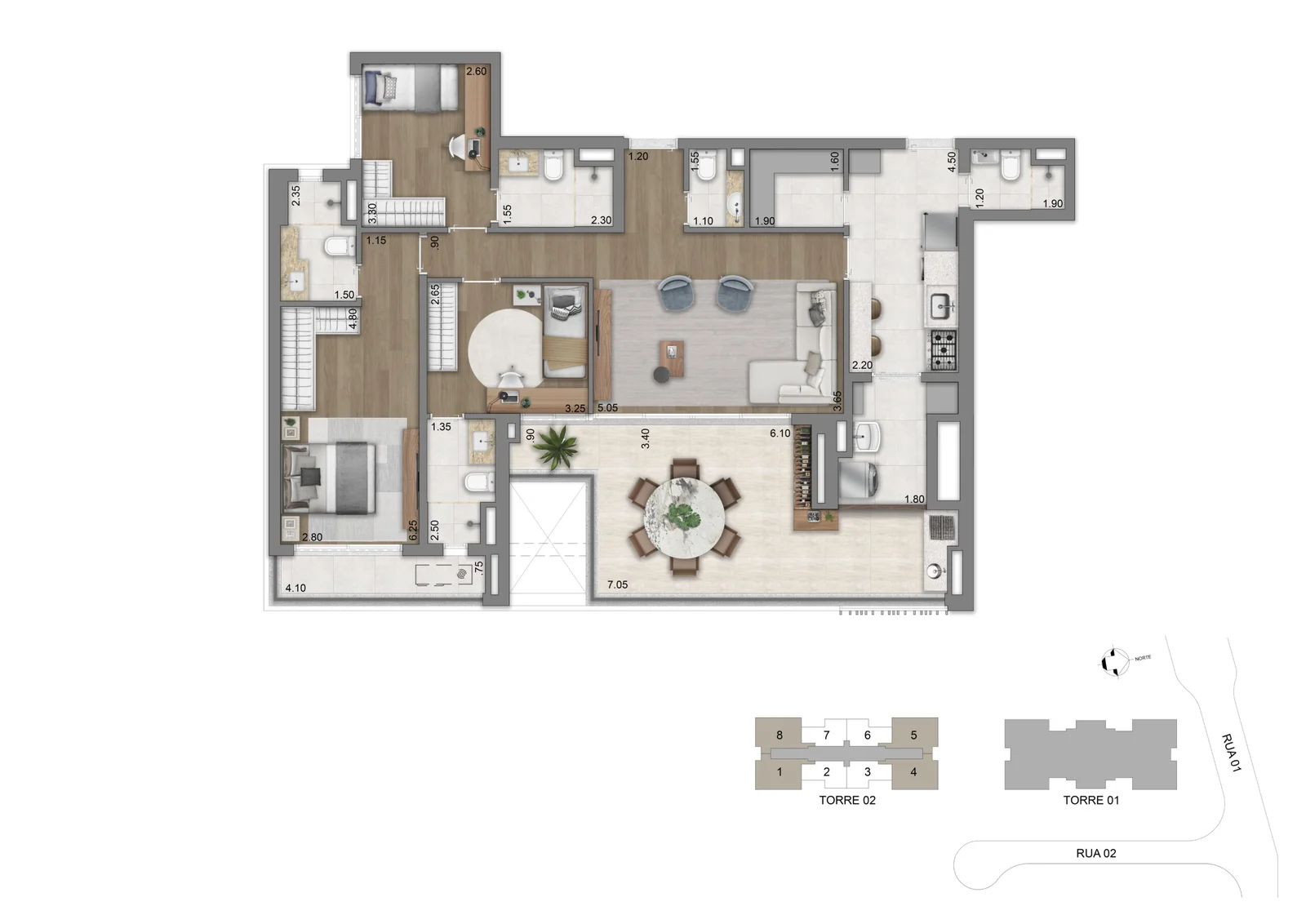 O ÉDEN integra um masterplan urbano inovador, implantado em um terreno de mais de 40 mil m², transformando um quarteirão inteiro em um novo polo de vida urbana. O complexo reúne residenciais exclusivos, mall, área corporativa e um parque central com aproximadamente 8.300 m², além de mais de 12 mil m² de áreas verdes e passeios, criando um verdadeiro pulmão verde no Brooklin . O empreendimento oferece residências com metragens que variam entre 77 m², 94 m², 123 m² e 134 m², com 2 ou 3 suítes e 2 vagas de garagem, além de unidades duplex que chegam a aproximadamente 247 m² e 270 m², pensadas para quem busca amplitude, exclusividade e contato direto com o verde. As plantas apresentam layouts flexíveis, terraços generosos, excelente iluminação natural e infraestrutura para automação, ar-condicionado e conforto acústico e térmico
